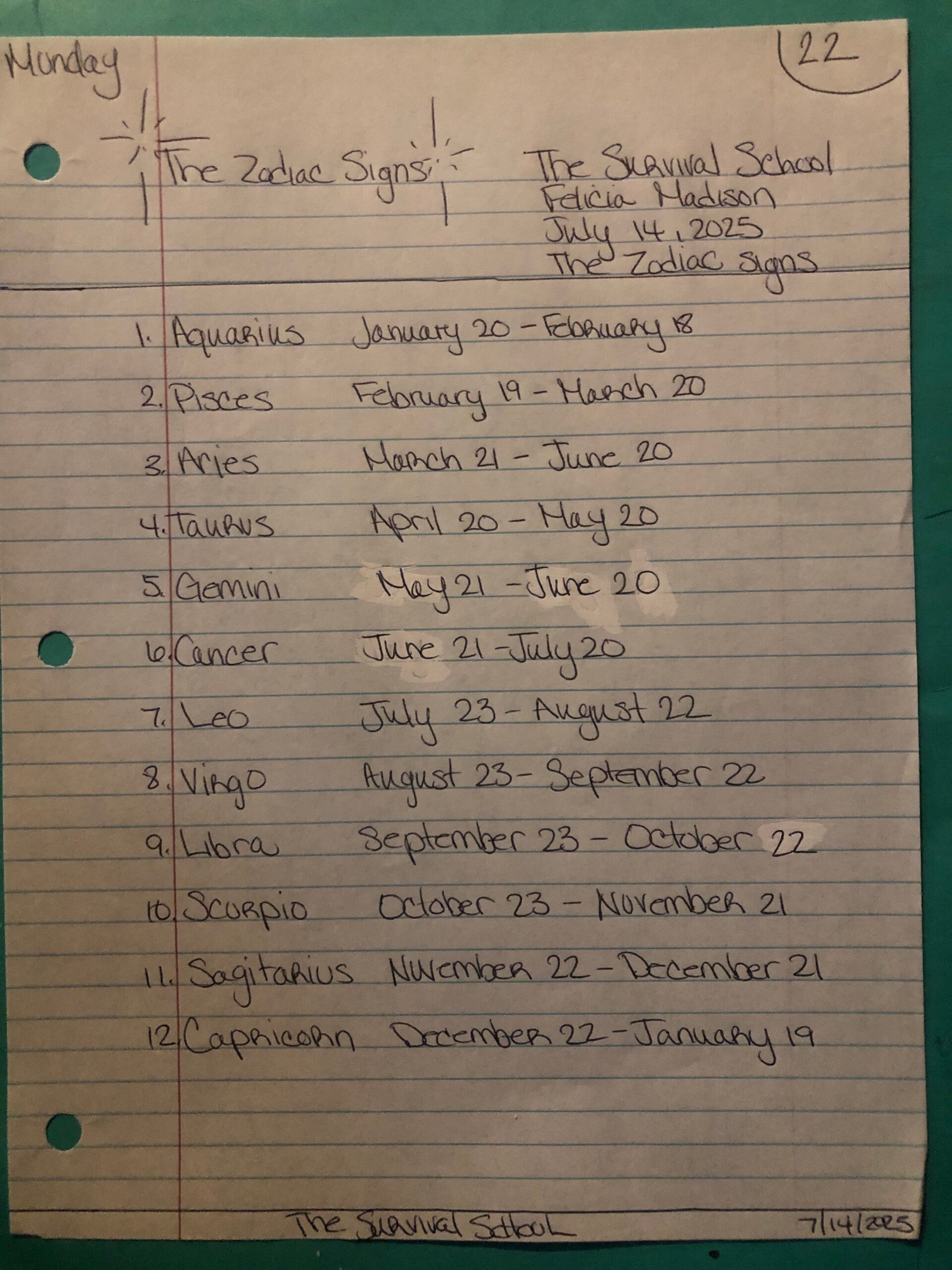 NEW SURVIVAL SCHOOL WORK PAPERS ARE PUT UP DAILY. π